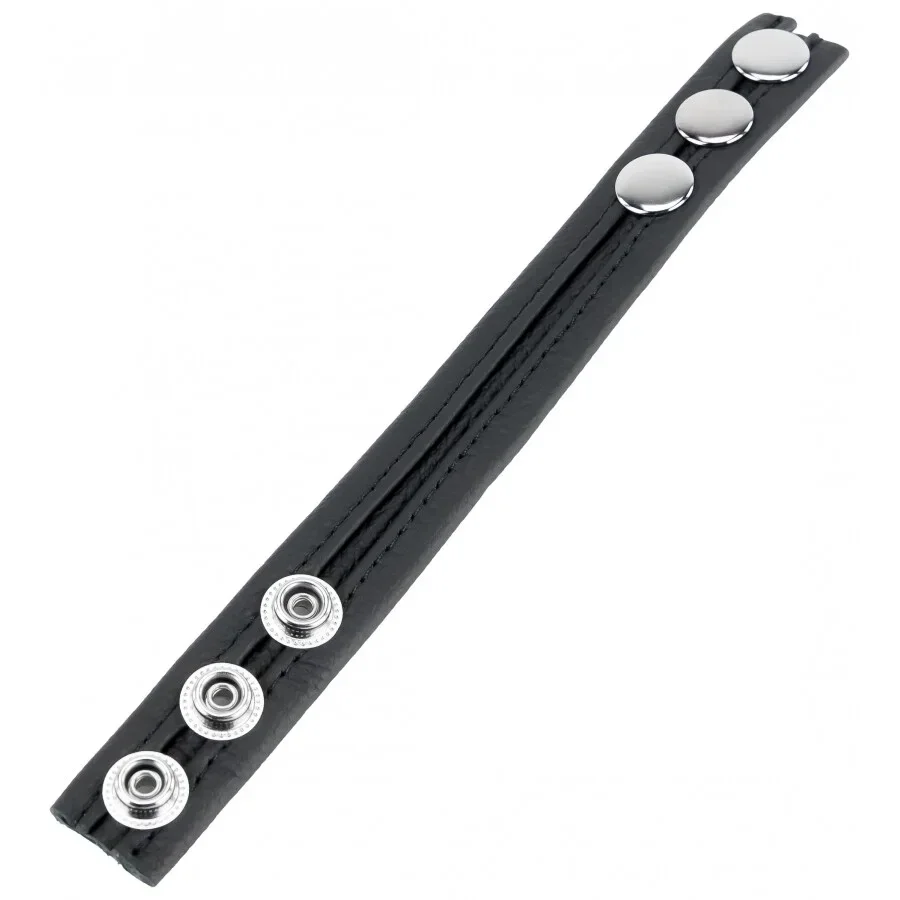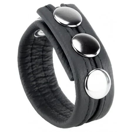 Ce cockring en cuir est proposé par la marque The Red. Il est conçu avec un cuir noir et une ligne rouge centrale.