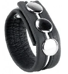 Ce cockring en cuir est proposé par la marque The Red. Il est conçu avec un cuir noir et une ligne rouge centrale.