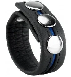 Ce cockring en cuir est proposé par la marque The Red. Il est conçu avec un cuir noir et une ligne rouge centrale.