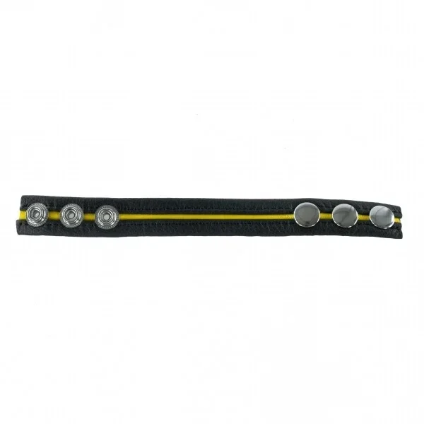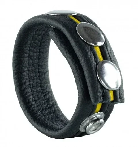 Ce cockring en cuir est proposé par la marque The Red. Il est conçu avec un cuir noir et une ligne rouge centrale.