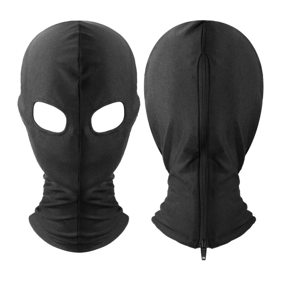 Cagoule noire avec des ouvertures uniquement pour les yeux.