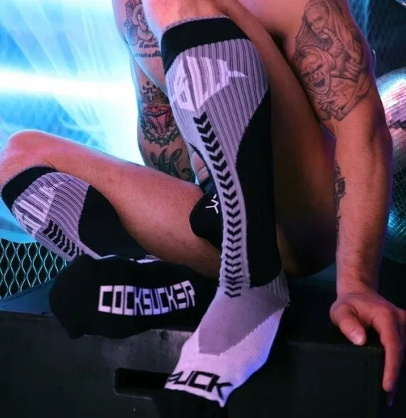 Avec le mot "Fuck" inscrit sur le dessus. Le mot "Cocksucker" est indiqué sous les pieds.