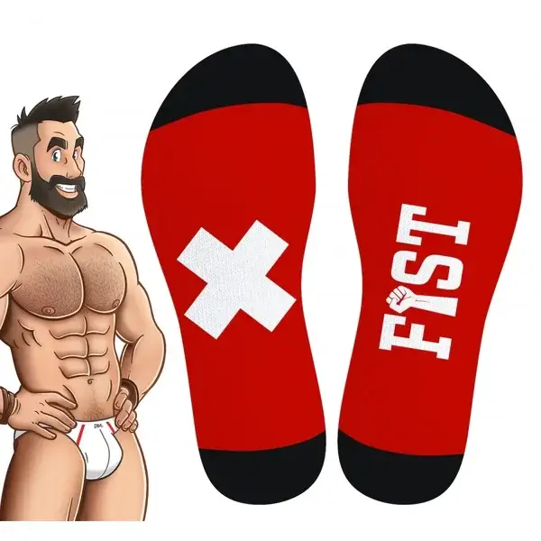 Les chaussettes hautes HANKY FIST de la marque sneakxx sont ici dans leur version rouge avec :